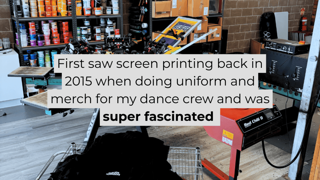 First saw screen printing back in 2015 when doing uniform and merch for my dance crew and was super fascinated about it as I always wanted to own a clothing label. Started making our own uniform for the crew with a vinyl heat transfer and then bought a chinese eBay press to dabble in screen printing and learned off youtube videos. In 2017 I was printing uniform and merch for most of the dance crews in Melbourne and realised this could be a business and launched Nemprints from there.